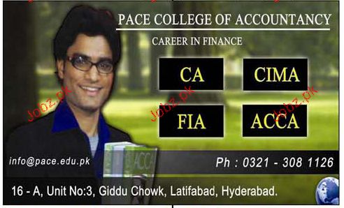 PACE College of Accountancy Admission in CA, CIMA, FIA and ACCA in Hyderabad. Read newspaper ad for exact details.