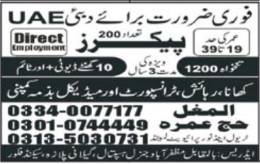 Al Mughal Hajj Umrah Travel and Tours Limited UAE, dubai UAE invites applications from eligible candidates for the post of packer as per advertisement of March 27, 2022 published in daily Mahasib Newspaper. Intermediate and Matric etc. educational qualification will be preferred.