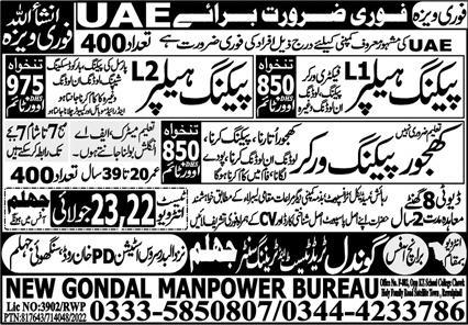 Gondal Trade Test & Training Center is looking for candidates for following posts as per job advertisement published in daily Express Newspaper of July 21, 2022 for location Abu Dhabi, sharjah UAE: