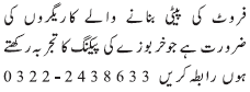 Apply as per details in job advertisement. Login to view further details of how to apply via https://www.jobz.pk online.