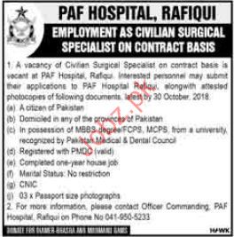 PAF Hospital Civilian Surgical Specialist Jobs 2018