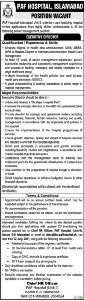 PAF Hospital Islamabad Executive Director Jobs 2021