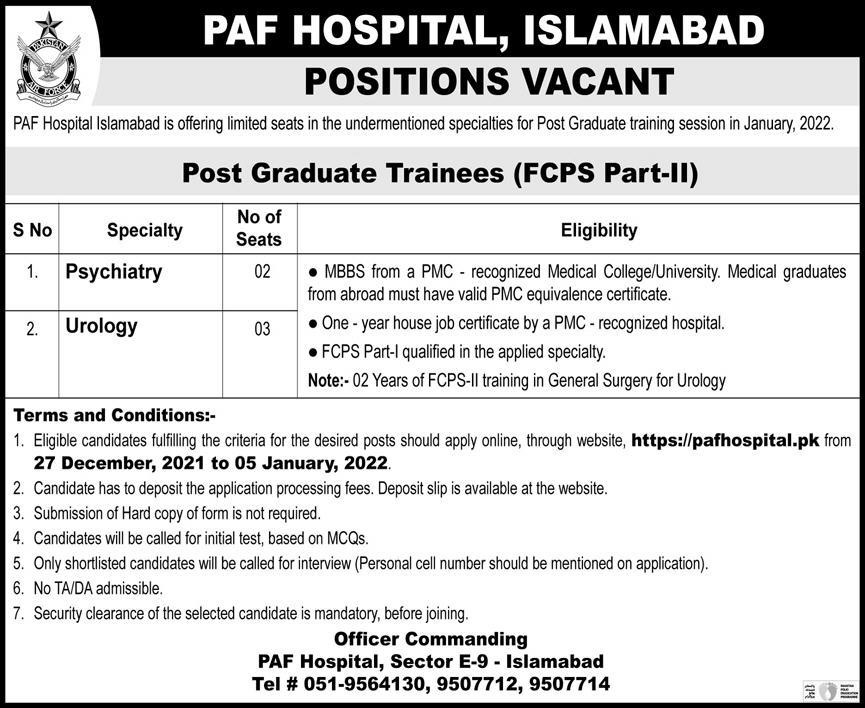 Latest PAF Hospital Medical Posts Islamabad 2025