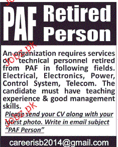 PAF Retired Personnels Job Opportunity