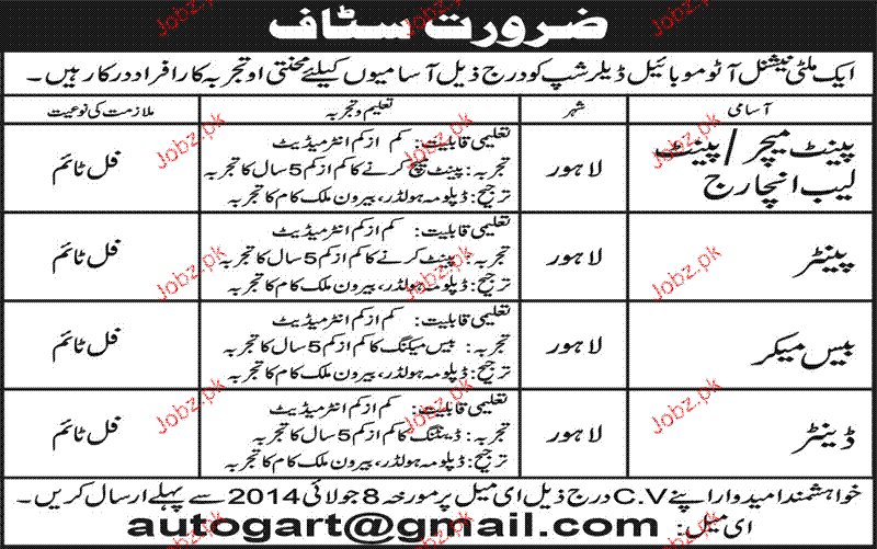 Apply as per details in job advertisement. Login to view further details of how to apply via https://www.jobz.pk online.