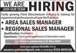 Vacancies in Paint Manufacturing Company Advertisement May 2024