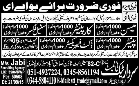 Painters, Carpenters, Mason, Steel Fixers Job Opportunity