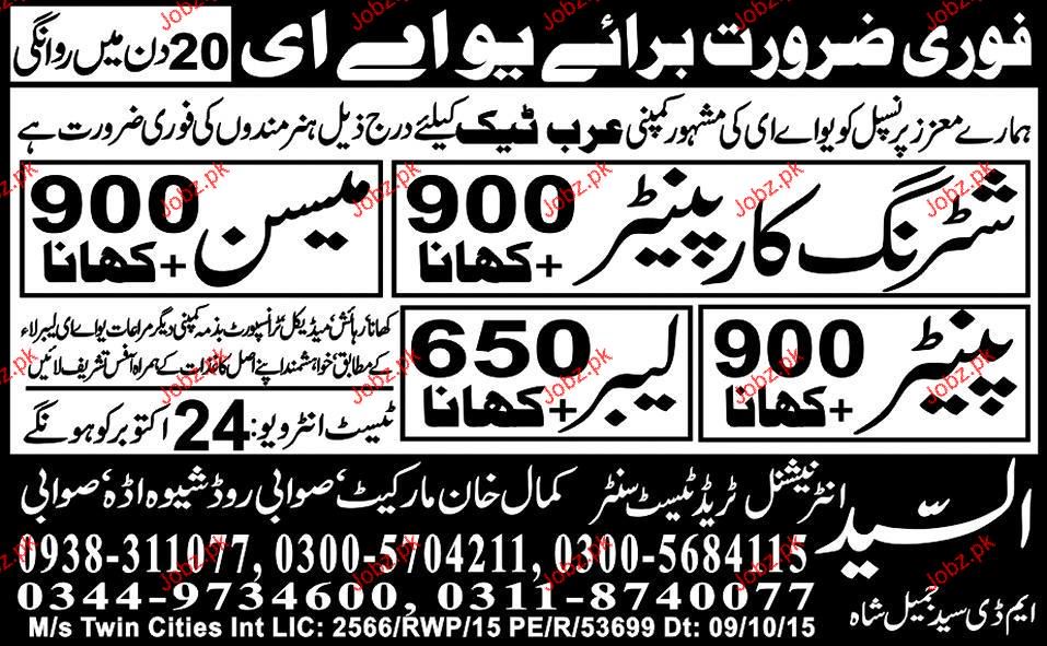 Painters, Labors, Shuttering Carpenters And Mason Wanted