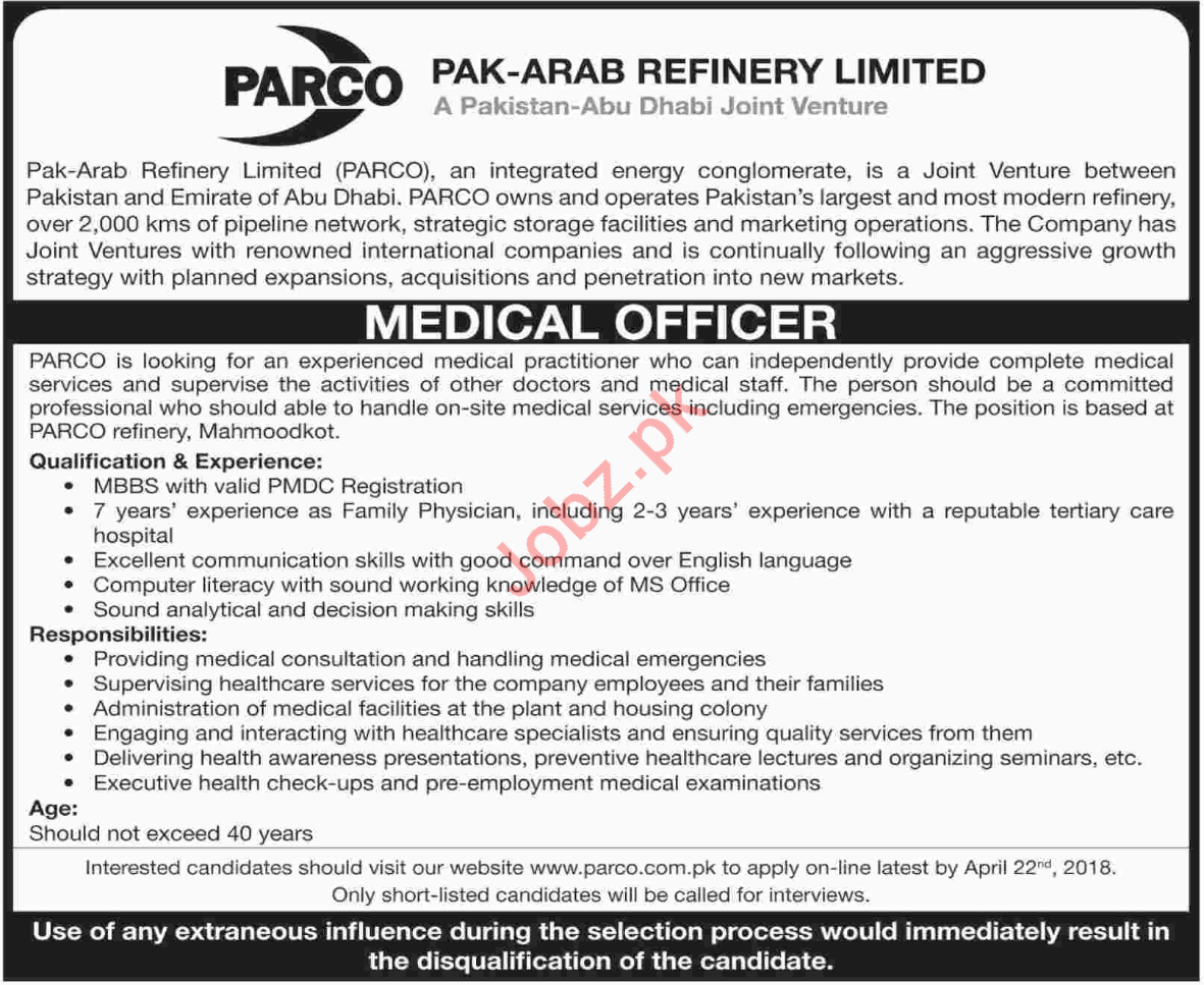 Latest Pak Arab Refinery Limited PARCO Medical Posts Islamabad 2025