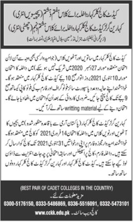 Pak Army Cadet College invites applications for online admissions in Class 7th, Class 8th and Class 9th in Kallar Kahar District Chakwal Punjab Pakistan 2021. Read newspaper ad for exact details.