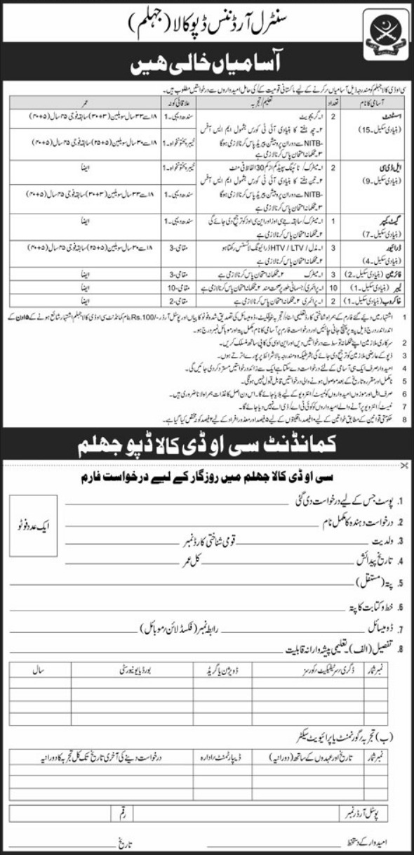 Latest Central Ordnance Depot COD Army jobs Posts Jhelum 2025
