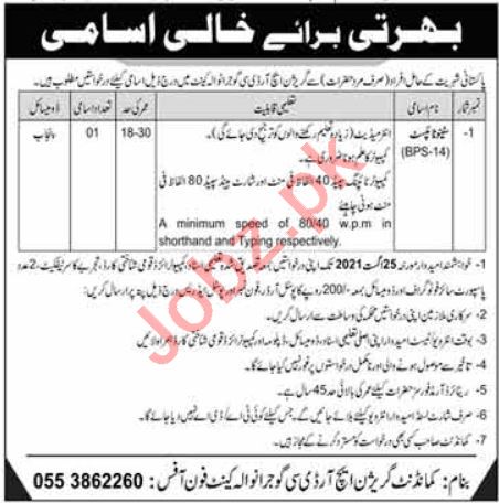 Pak Army Garrison HRDC Gujranwala Cantt Jobs 2021