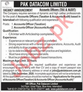 Pak Datacom Islamabad Jobs 2020 For Accounts Officer