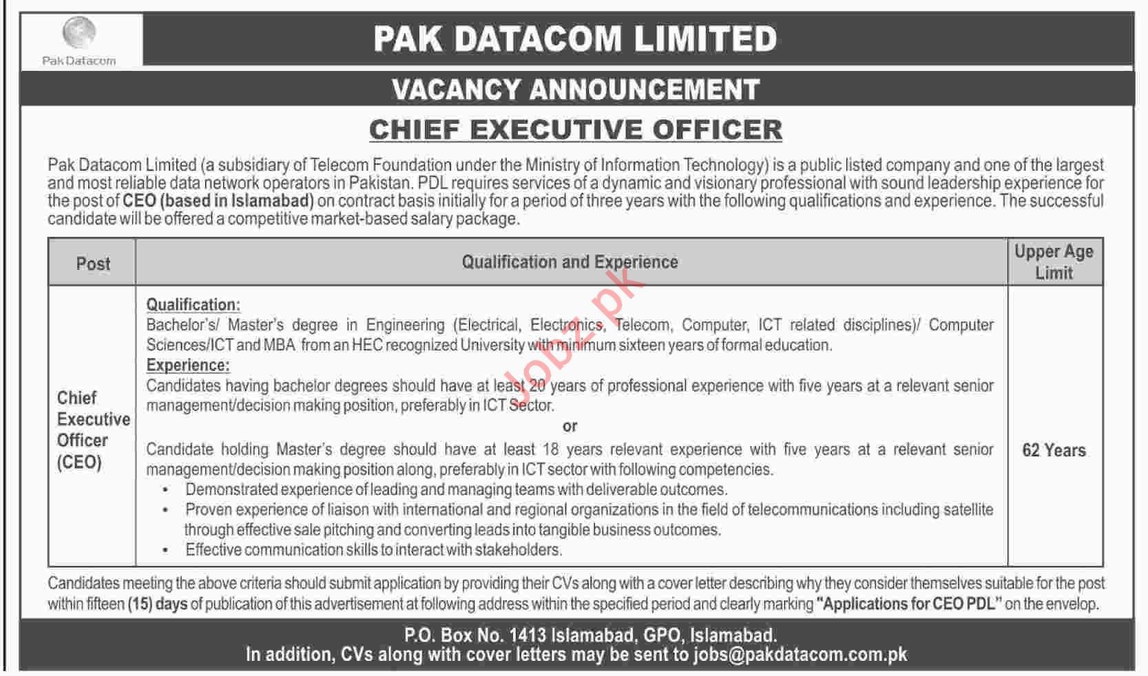 Pak Datacom Limited Job For Chief Executive Officer CEO