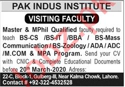 Pak Indus Institute Visiting Faculty Jobs 2020 In Lahore