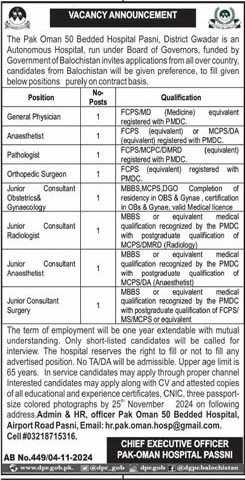 Pak Oman Hospital POH Passni Jobs 2024