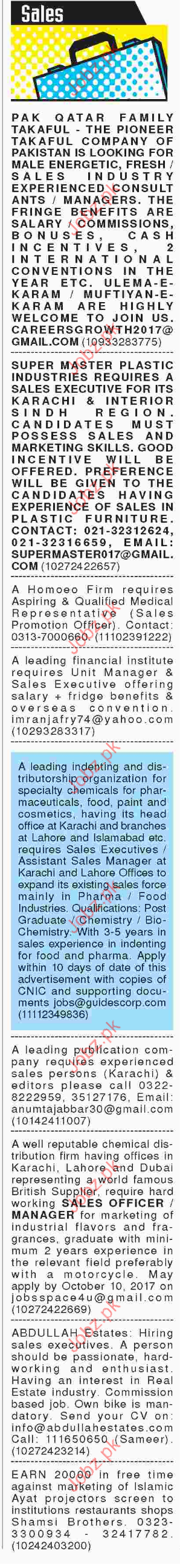 Apply as per details in job advertisement. Login to view further details of how to apply via https://www.jobz.pk online.