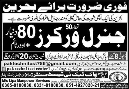 Latest Pak Techni Test Center Labor Posts Bahrain 2025