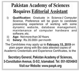 Pakistan Academy Of Sciences Editorial Assistant Jobs 2019