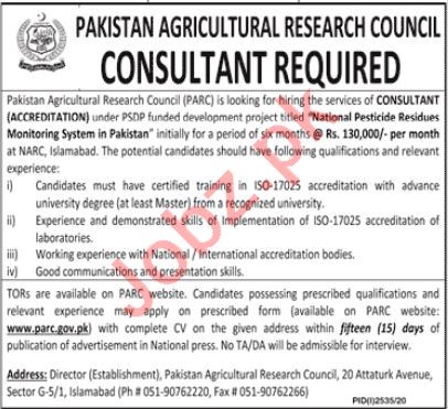 Vacancies in Pakistan Agricultural Research Council Advertisement November 2020