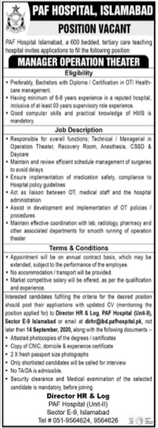 Vacancies in PAF Hospital Advertisement September 2020