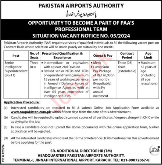 Vacancies in Pakistan Airports Authority PAA Advertisement October 2024
