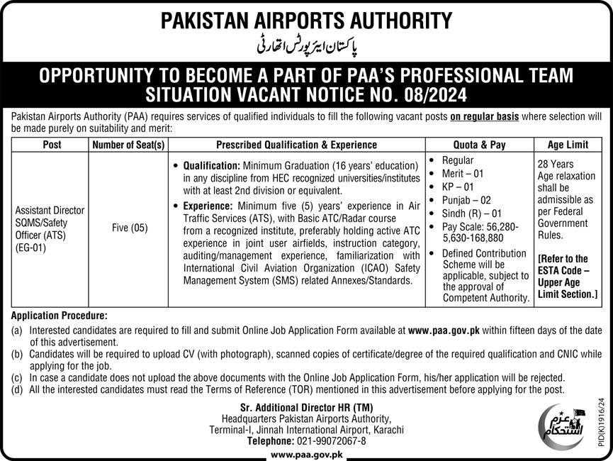 Vacancies in Pakistan Airports Authority PAA Advertisement December 2024