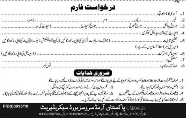 How to Apply on Pakistan Armed Services Board Department Ministry of Defence Job Advertisement