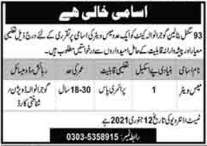 Pakistan Army 93 Signal Battalion Gujranwala Cantt Job 2021