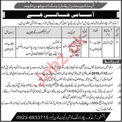 Pakistan Army Armed Core Centre Nowshera Cantt KPK Job 2019