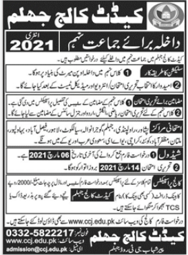 Pakistan Army Cadet College is a special military school system invites applications for admissions in Class 9th in Jhelum Punjab Pakistan 2021. Written test will be held on 14th March 2021. Read newspaper ad for exact details.