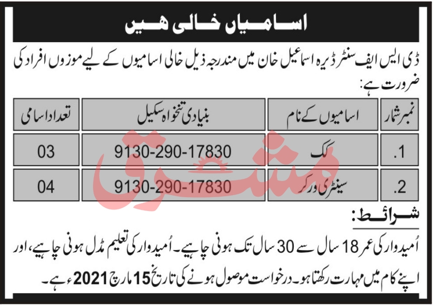 Pakistan Army DSF Center Jobs 2021 In DI Khan