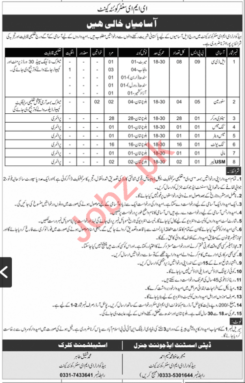 Pakistan Army EME Centre Quetta Cantt Jobs 2020