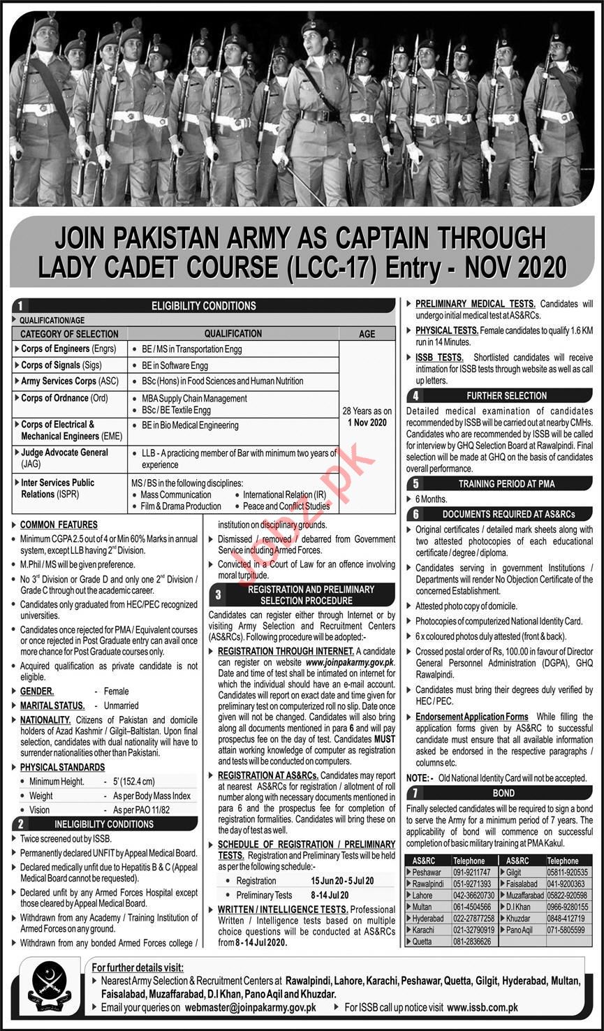 Pakistan Army Join Captain Lady Cadet Course 2020