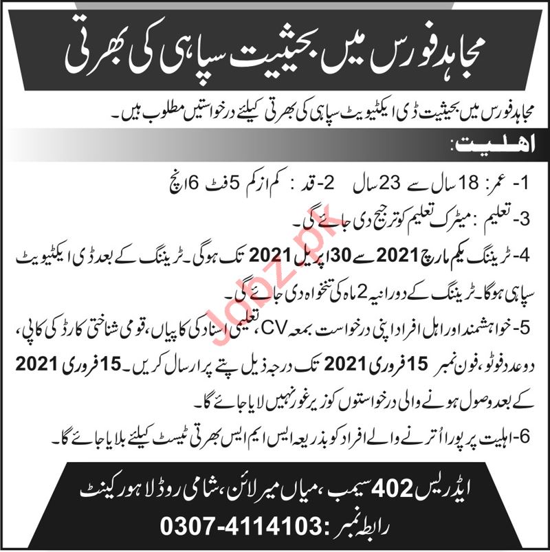 Latest Mujahid Force Army jobs Posts Lahore 2025