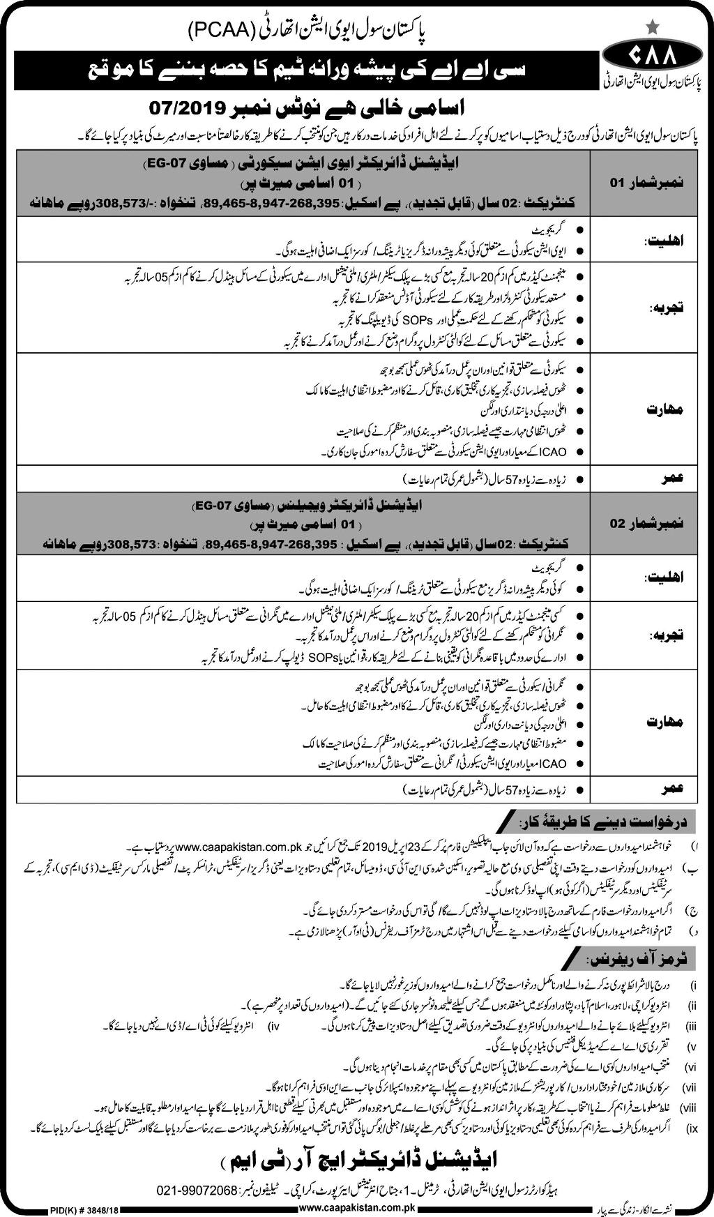Vacancies in Pakistan Civil Aviation Authority CAA Advertisement April 2019