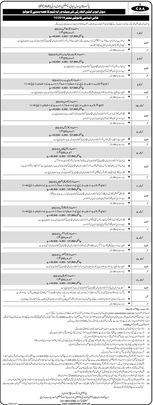 Vacancies in Pakistan Civil Aviation Authority CAA Advertisement November 2018