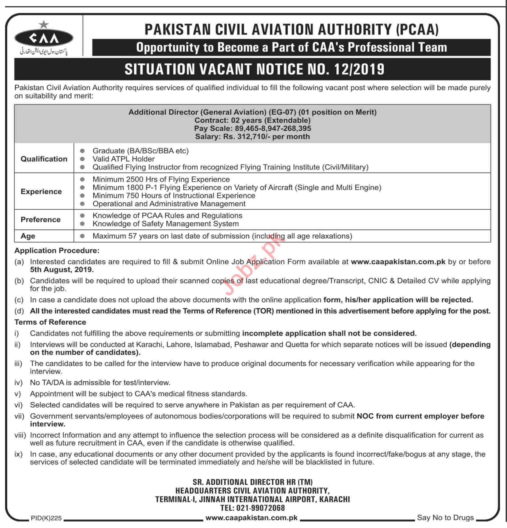 Vacancies in Pakistan Civil Aviation Authority CAA Advertisement July 2019