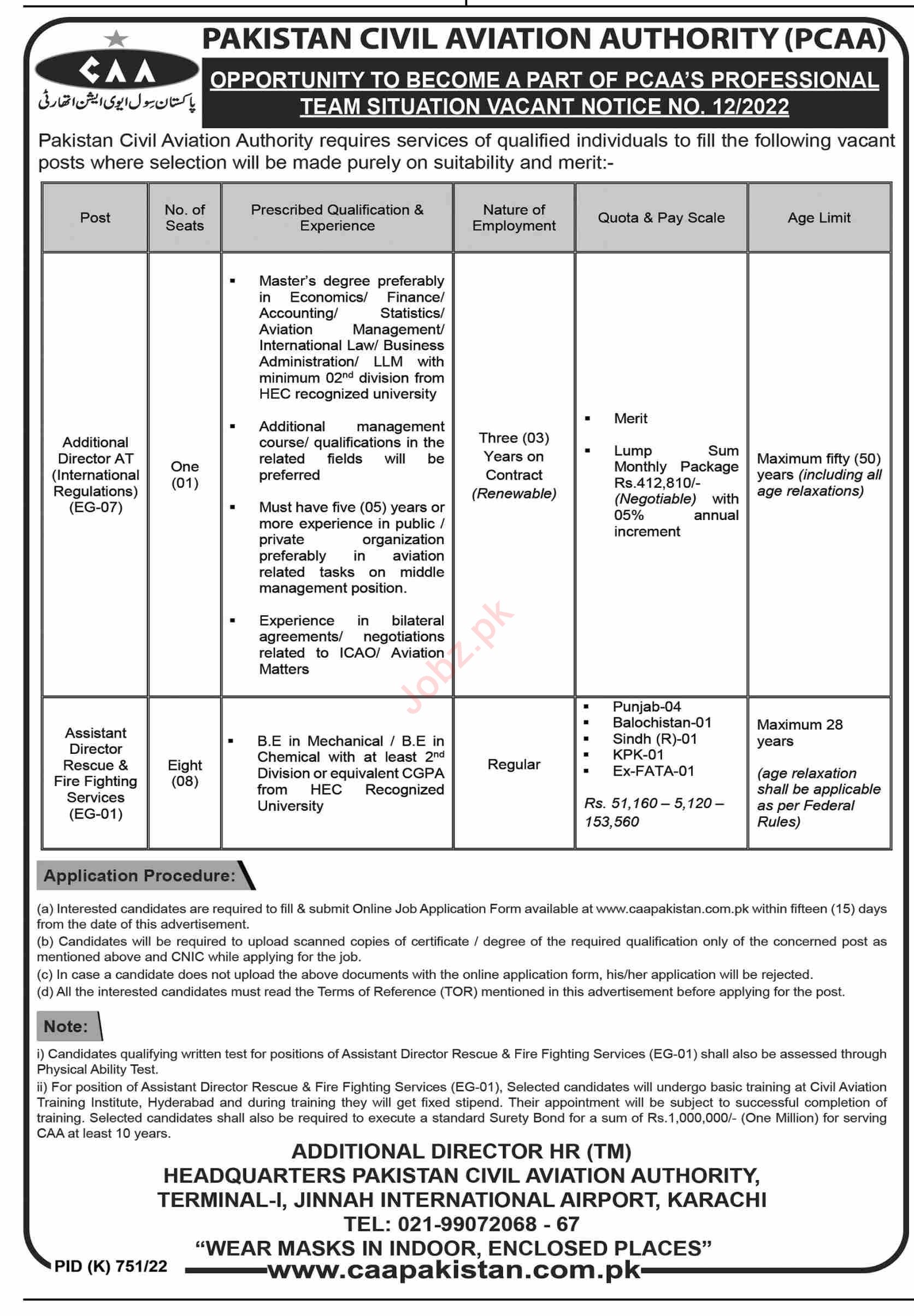 Vacancies in Pakistan Civil Aviation Authority CAA Advertisement September 2022