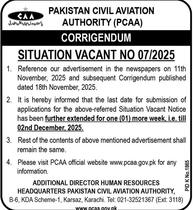 Apply at Pakistan Civil Aviation Authority CAA latest Government jobs in Management and departments before closing date which is around December 2, 2025 or as per closing date in newspaper ad. Read complete ad online to know how to apply on latest Pakistan Civil Aviation Authority CAA job opportunities.