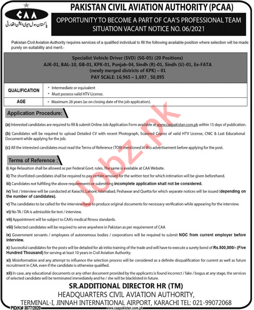 Pakistan Civil Aviation Authority PCCA Jobs 2021 For SVD