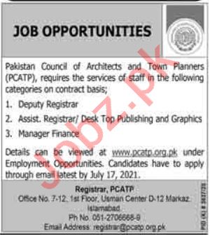 Vacancies in Pakistan Council of Architects & Town Planners PCATP Advertisement July 2021