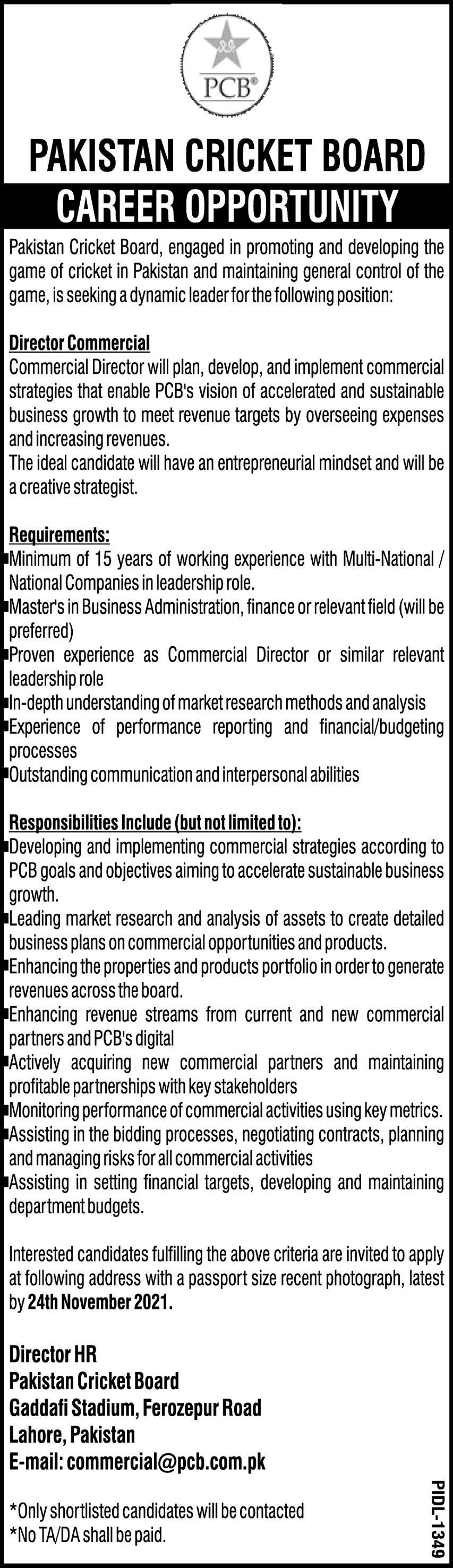 Pakistan Cricket Board PCB Director Commercial Jobs 2021