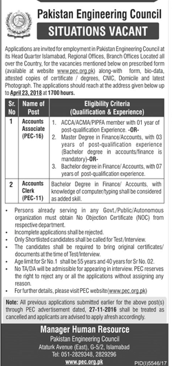 Latest Pakistan Engineering Congress PEC Accounting Posts Islamabad 2025