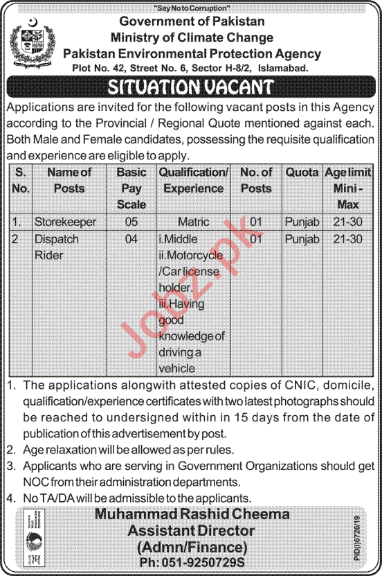 Vacancies in Ministry of Climate Change Advertisement June 2020