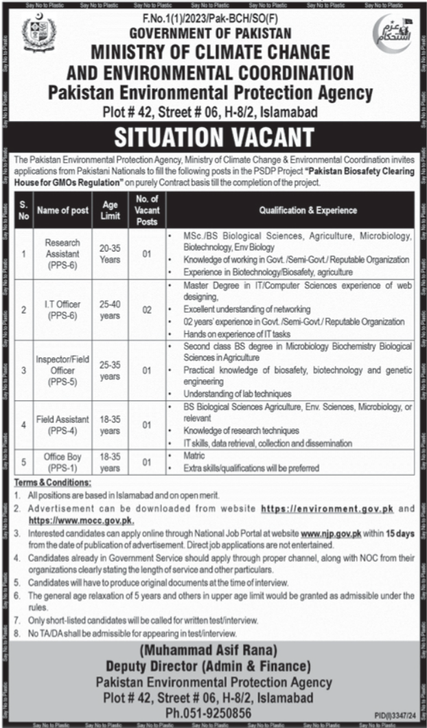 Vacancies in Ministry of Climate Change Advertisement November 2024