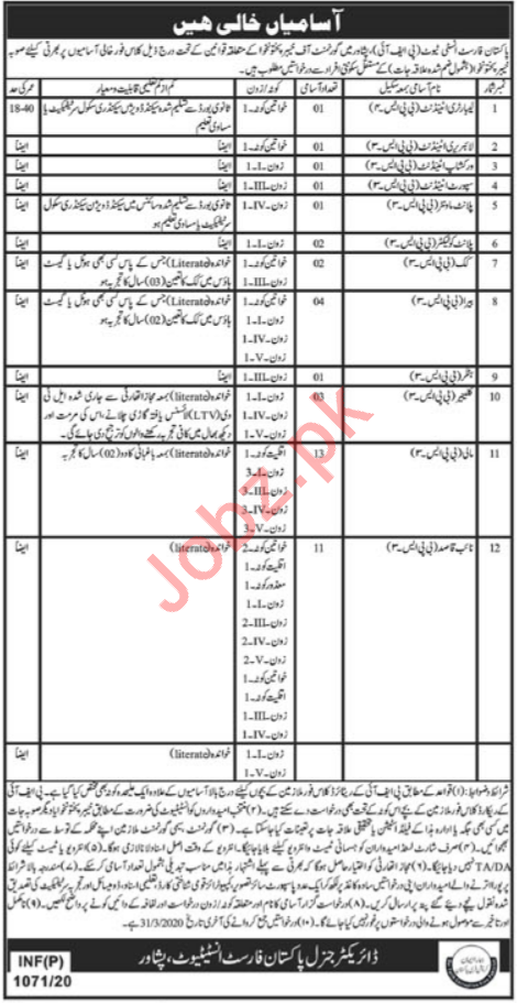 Pakistan Forest Institute PFI invites applications from experienced and strong persons for the posts of Laboratory Attendant, Library Attendant, Workshop Attendant, Support Attendant, Plant Monitor, Cook, Bearer, Cleaner, Mali and Naib Qasid in Peshawar KPK 2020.