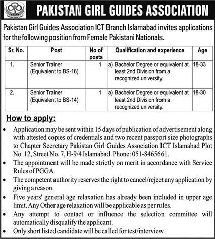 Vacancies in Pakistan Girl Guides Association Advertisement March 2021