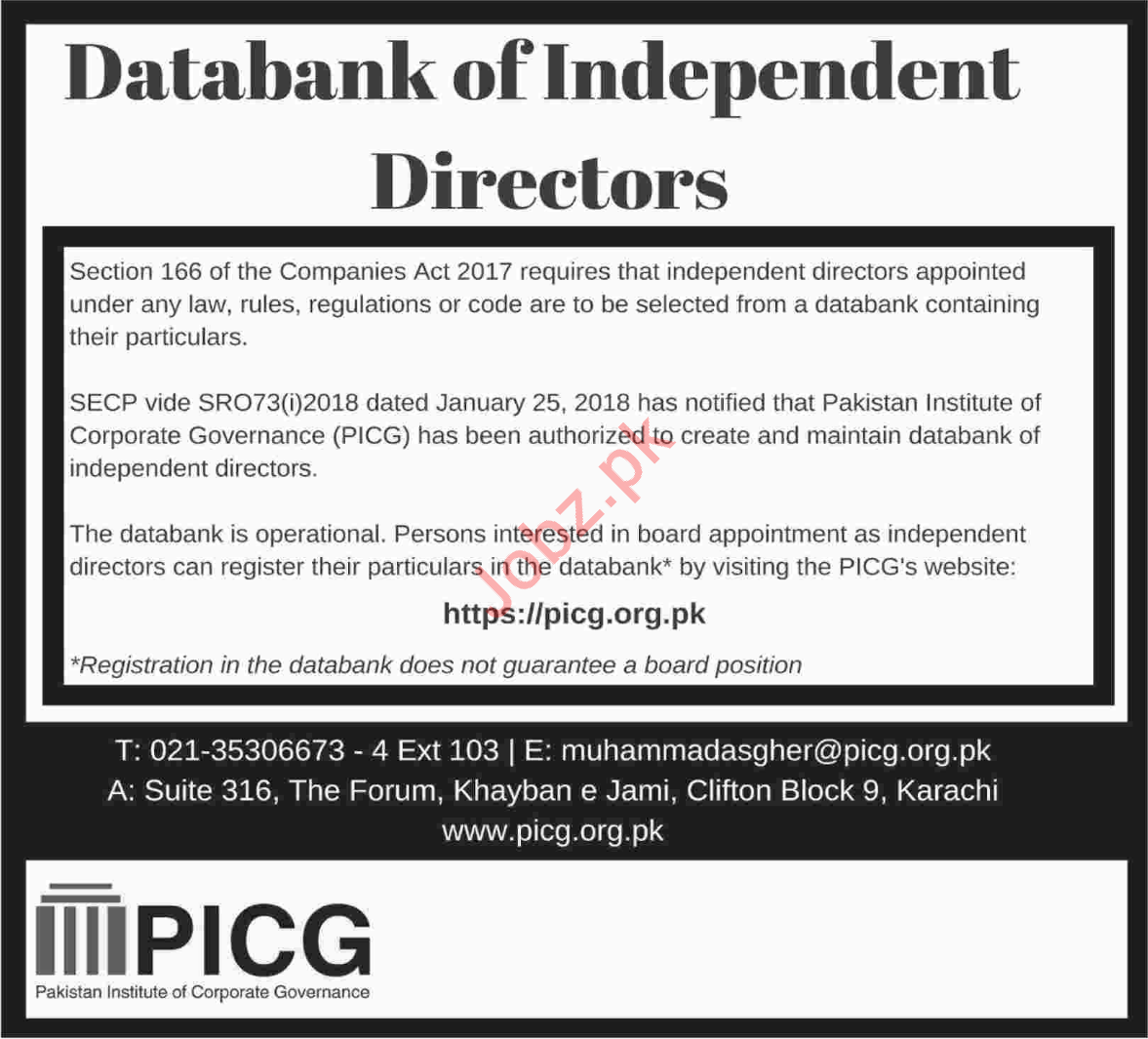 Pakistan Institute Of Corporate Governance PICG Jobs 2019