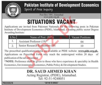 Latest Pakistan Institute of Development Economics PIDE Education Posts Islamabad 2025